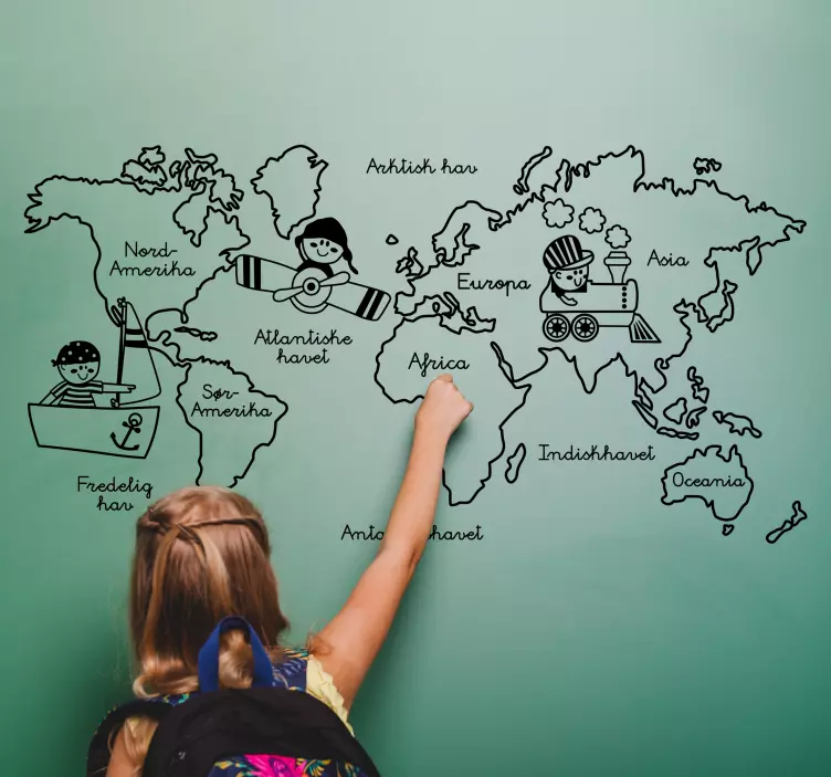 Dette fantastiske veggklistremerket vil garantert fascinere både barn og gjester. Med dristige linjer som definerer verdens kontinentale plater, viser dette spennende verdenskartetiketten den mest interessante geografiske kunnskapen vi har! Den er perfekt for barn som ønsker å lære mer om vår fascinerende planet.