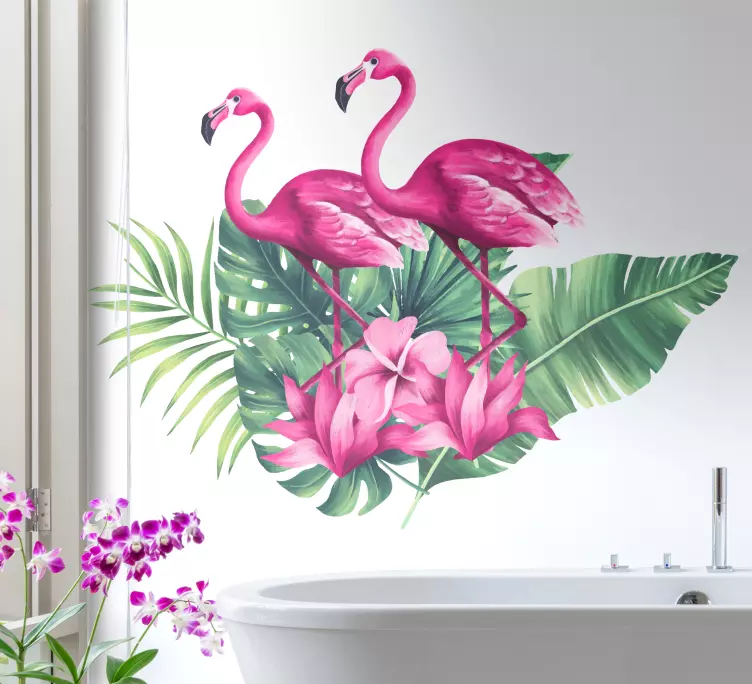 Flamingoer med planteblad fugl klistremerke