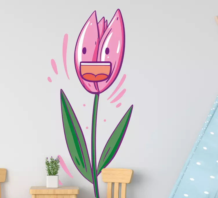 Referanse:: A48225En engasjerende skildring av en glad tulipan, med særegne ansiktsuttrykk og livlige farger. Den glade estetikken skaper en lettsindig atmosfære, noe som gjør den perfekt for et livlig rom. Dette designet vekker følelser av lykke og varme, og appellerer til både barn og voksne.