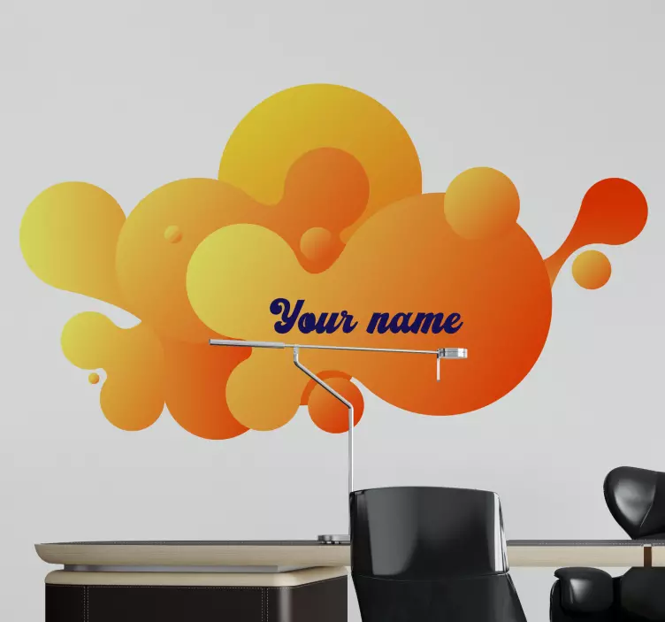 Oppdag vårt fantastiske Graffiti klistremerke fargerik bobledesign, hvor abstrakte former møter en gradient av væske-aktige farger. Dette personlig tilpassede designet lar deg inkludere ditt eget navn, og kombinerer geometriske elementer med et moderne og ungdommelig uttrykk. Hver detalj er laget for å fange oppmerksomheten og gi liv til ethvert rom!