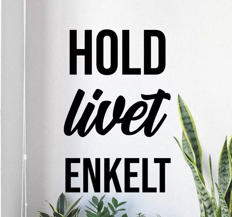 Dette selvklebende vinylmerket med en inspirerende tekst, er perfekt for å tilpasse hvilken som helst plass og minne deg på å holde livet enkelt. Fargen kan tilpasses i en hvilken som helst av fargene som er tilgjengelige i vår katalog. Legg til et nydelig utseende på rommet ditt med dette klistremerket av høy kvalitet.
