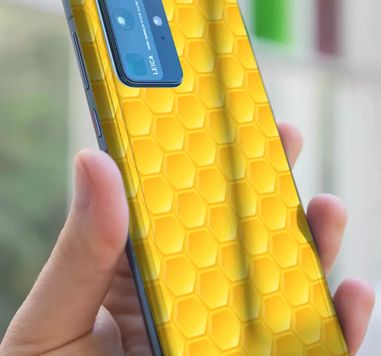 Oppdag det unike Huawei-klistremerket i bikubemønster som kombinerer grafisk design med stil. Dette klistremerket har et iøynefallende bikubemønster med sekskanter i en lys gul farge som gir en moderne og livlig tekstur til din telefon. Med sitt unike design vil dette klistremerket helt klart skille seg ut!