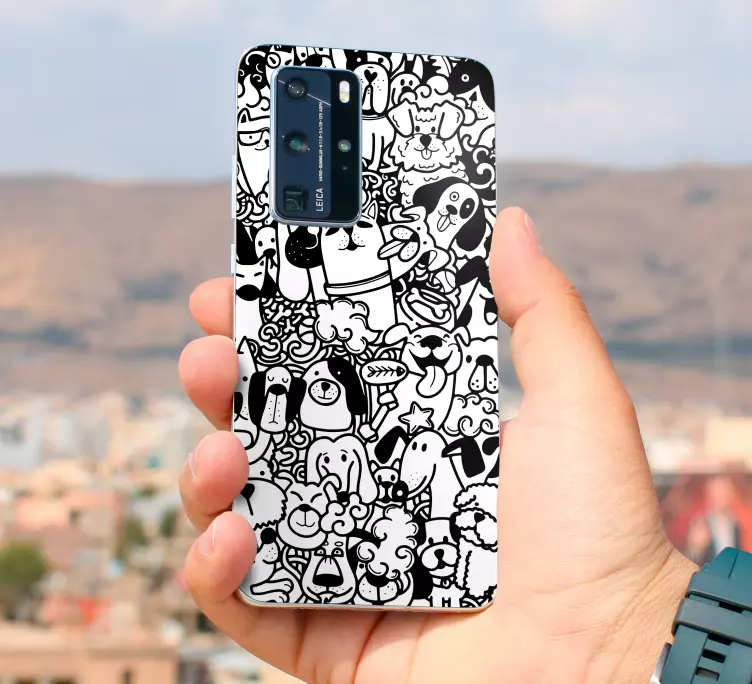 Oppdag vårt fantastiske Huawei-klistremerke med lekne hundemotiver, som kombinerer grafisk design med morsomme hunder og valper i et unikt mønster! Dette klistremerket er perfekt for å gi din telefon et livlig uttrykk med sine svarte og hvite farger. La din Huawei skinne med et mønster som virkelig skiller seg ut!