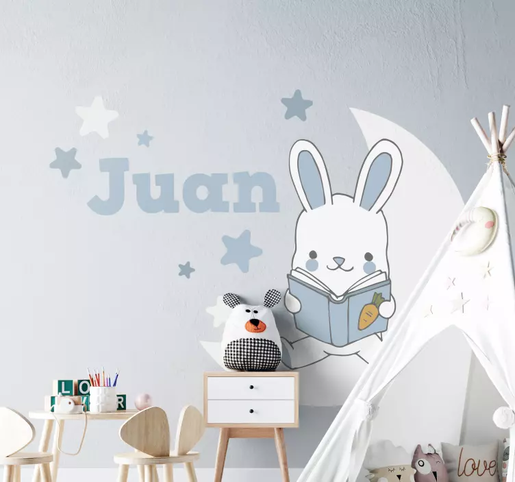 Referanse:: A26236Kaninlesing på månen - veggkunst med personlig preg