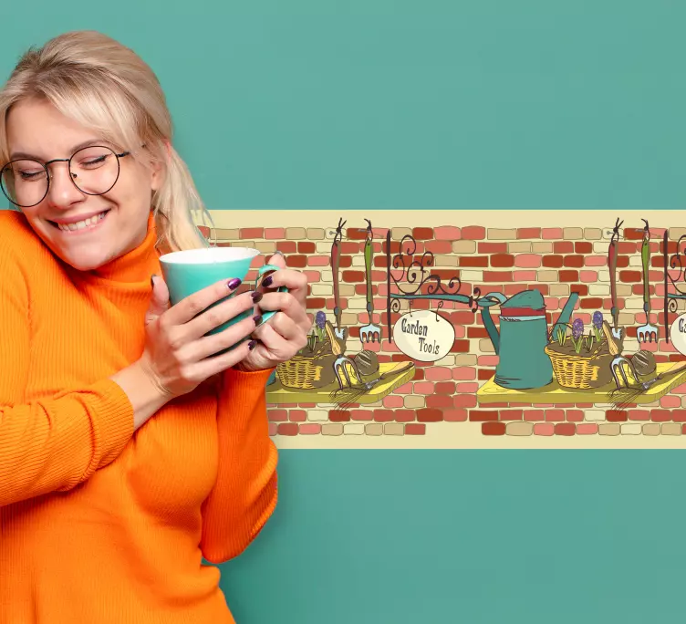 Kant klistremerke hageverktøy utstilling er en spennende måte å lyse opp hjemmet ditt på! Dette produktet har et grafisk design som kombinerer elementer som murstein og murvegg i en fargerik tegnefilmstil. Perfekt for kjøkken eller hagen, gir dette dekorative verktøyet et friskt preg til enhver husstand.