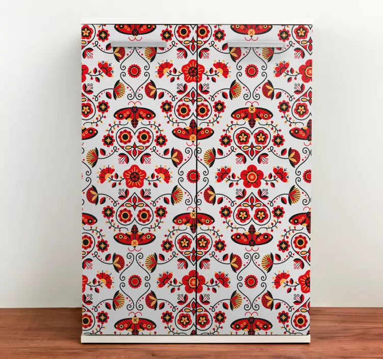 Kjøleskap klistremerke botanisk motiv kunst er en fantastisk måte å gi hjemmet ditt et livlig preg! Med inspirerende design som inkluderer folk, sommerfugler, blomster og møbler, kombinerer dette produktet floral kunst med fargerik estetikk. Det utsmykkede mønsteret er perfekt for å bringe natur inn i stuen og skape en levende atmosfære!