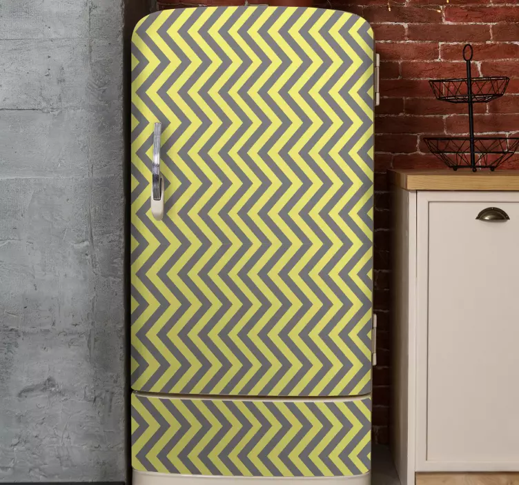 Gi kjøleskapet ditt et moderne preg med vårt kjøleskap klistremerke med chevronmønster. Dette grafiske designet med striper og sikksakk-mønster tilfører en fargerik og livlig atmosfære til ditt hjem. Med sitt stilige og moderne utseende er dette klistremerket den perfekte løsningen for hjemmedekorasjon, og det forvandler et vanlig kjøleskap til et kunstverk!