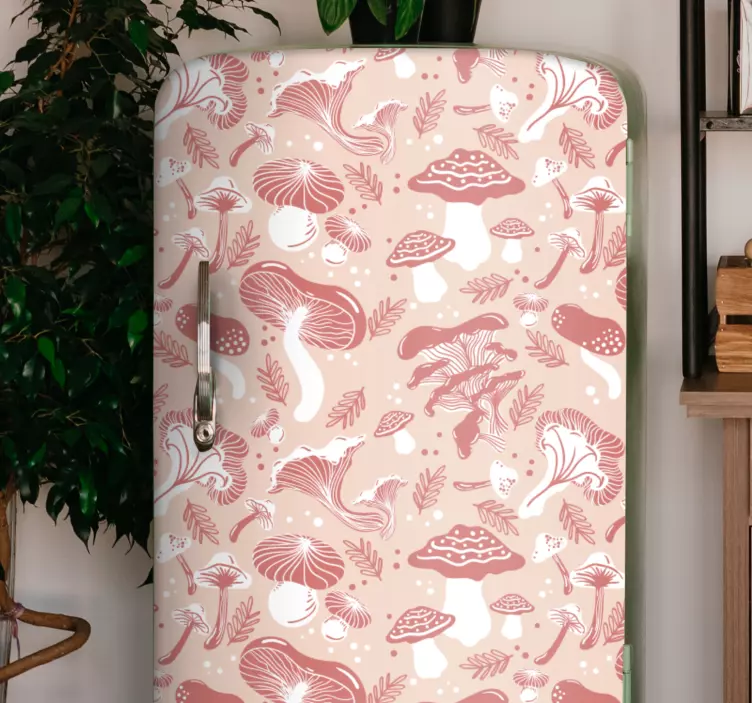 Oppdag vårt kjøleskap klistremerke med lekent soppmønster, hvor grafisk design møter naturens skjønnhet! Dette unike klistremerket er prydet med sopp og flora i en lekent rosa farge, som gir et snodig og livlig uttrykk til kjøleskapet ditt. Med dette produktet kan du forvandle ditt kjøkken til en leken oase av naturens underverk!