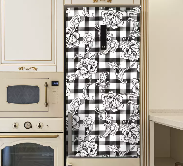 Oppdag vårt unike klistremerke dyr blomstermønster, som kombinerer et elegant design med en fantastisk grafisk fremtoning. Med et floral og rutete mønster i svart og hvit, gir dette klistremerket liv til ethvert kjøleskap eller rom. Den stilige utførelsen skaper en sofistikert atmosfære som vil fortrylle alle som ser det!