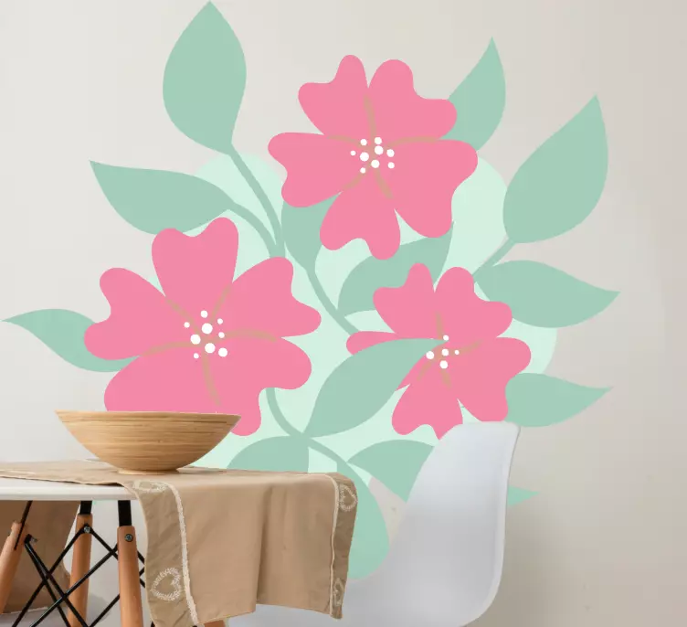 Referanse:: A48129En livlig komposisjon med delikate rosa blomster omkranset av frodige grønne blader. Dette friske designet tilfører et preg av natur til ethvert rom, og skaper en glad og innbydende atmosfære.