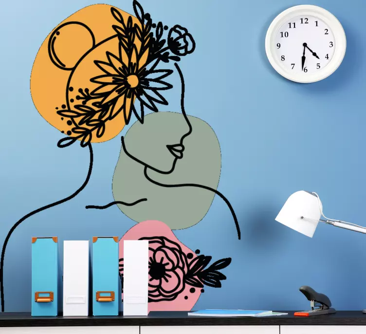 Oppdag vårt unike klistremerke dyr elegant kvinnesilhuett, som kombinerer kunstnerisk linjekunst med et vakkert og abstrakt design av en kvinne med blomster som omgir henne. Dette minimalistiske portrettet fremhever elegansen til en hunnfigur, og gir et sofistikert preg til ethvert rom. Med sin rene linjer og floral inspirasjon, er dette produktet perfekt for den som ønsker å tilføre en kunstnerisk berøring til interiøret.