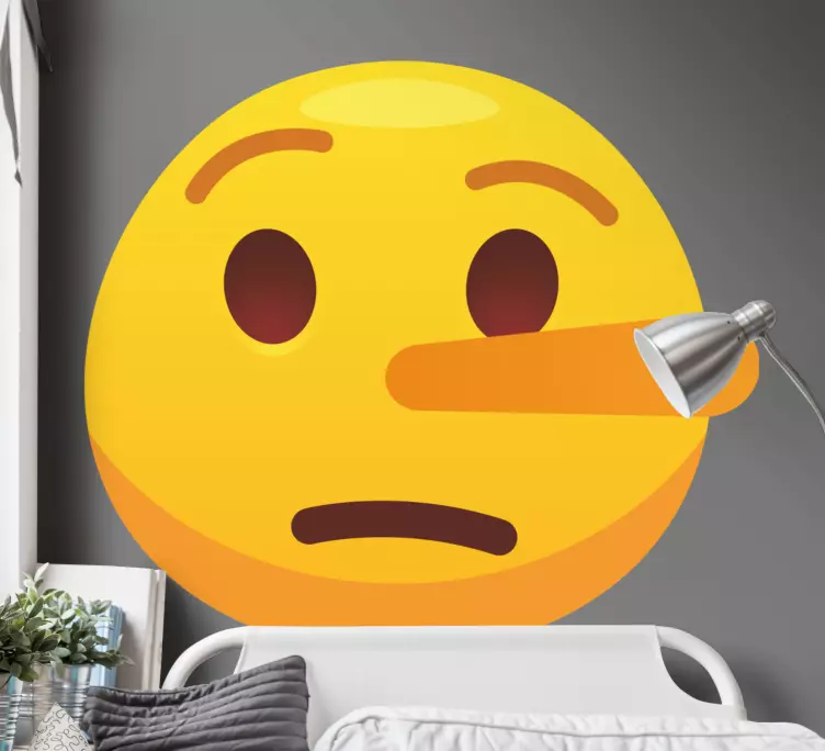 Referanse:: A48740Et lekent ikon som viser et gult ansikt med en nese som antyder en fiktiv fortelling. Dette designet fanger humoristiske uttrykk, noe som gjør det passende for ulike lekne sammenhenger, og vekker følelser knyttet til spøk og ironi.