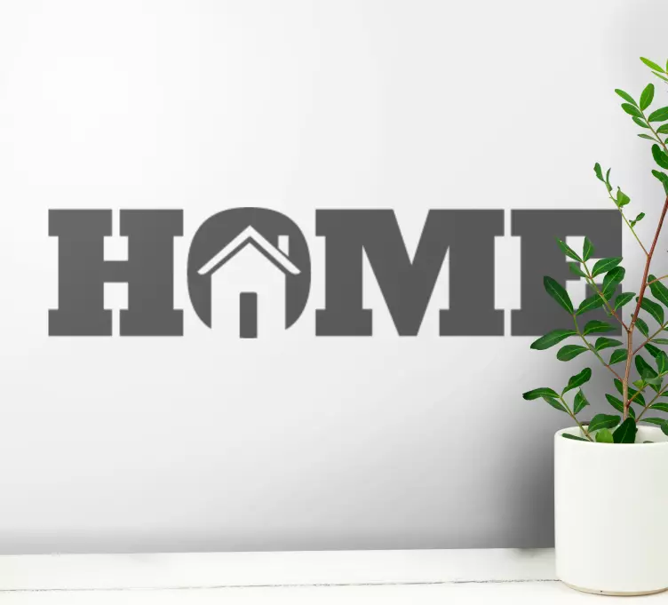 Referanse:: A49083Dette designet har ordet 'home' med et integrert taksymbol, som fremhever komfort og en følelse av tilhørighet. Den monokrome stilen gir fleksibilitet i fargevalg, noe som gjør den egnet for ulike hjeminteriører.