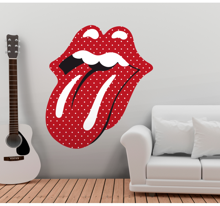 Referanse:: A51434Denne livlige illustrasjonen har et dristig tungemotiv dekorert med prikker, som gir en leken og uttrykksfull stemning. Det slående designet fanger oppmerksomheten med sin unike form, noe som gjør det til et ideelt valg for musikkentusiaster og kunstelskere.