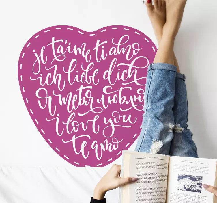 Velkommen til vår fantastiske kolleksjon av klistremerke dyr med hjertelige kjærlighetsuttrykk! Dette unike designet er grafisk utformet med hjerte, tekst, kjærlighet, og du i en forskjellig språkstil, og kombinerer kalligrafisk kunst med flerspråklig uttrykk. Det er både følelsesladet og romantisk, perfekt for å dekorere ethvert rom med en varm og innbydende atmosfære!