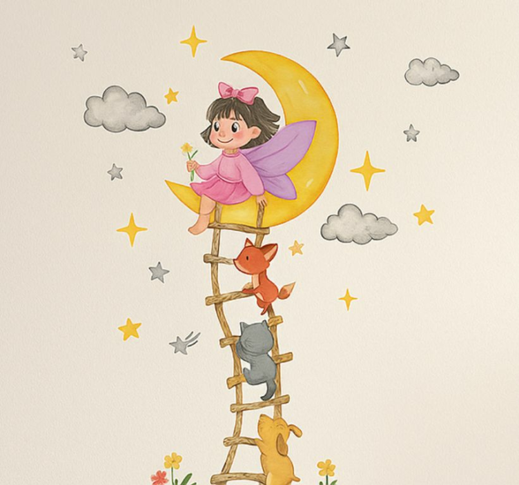 Klistremerke dyr moon girl veggdekor