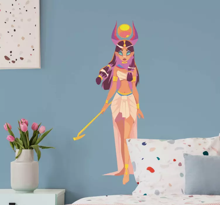 Oppdag vårt fantastiske klistremerke dyr mytisk egyptisk figur, som kombinerer en fargerik design med elementer fra gammel kultur og mytologi! Dette unike klistremerket har en grafisk stil som fremhever en gudinne fra egyptisk mytologi, illustrert i en livlig tegneserie-stil. Den kvinnelige karakteren er inspirert av fantasi og gir en fortryllende touch til ethvert rom. Den fargerike designen gjør at dette klistremerket virkelig skiller seg ut!