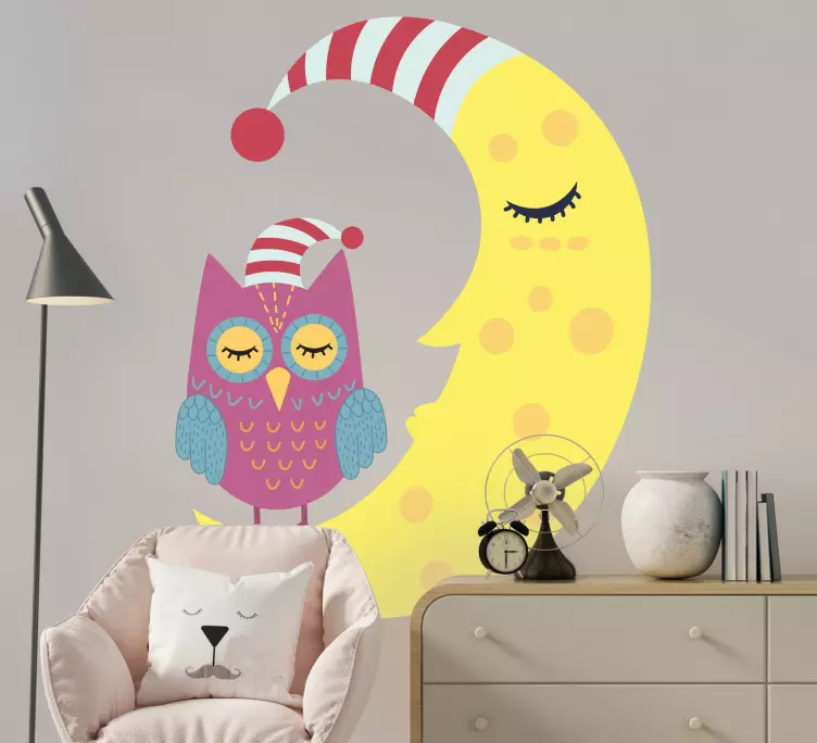 Oppdag vårt fantastiske klistremerke for barn døsige ugle luna som bringer liv og farge til ethvert barnerom! Med et design som inkluderer en måne, ugle, tegneserie, og en søt fugl som sover under stjernene, vil dette klistremerket skape en magisk atmosfære om natten. Den fargerike utformingen er perfekt for å gi rommet en koselig følelse, og vil garantert fange oppmerksomheten til både barn og voksne!