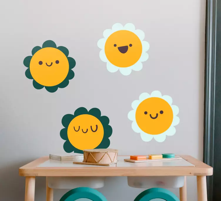 Oppdag vårt klistremerke for barn med glade blomsterfigurer, som skaper en magisk atmosfære på barnerommet! Designet er preget av solsikker og lykkelige blomster som smiler til deg. Dette fargerike og lekne klistremerket gir en floral touch til ethvert rom, og er perfekt for å dekorere veggene på en søt og inspirerende måte.
