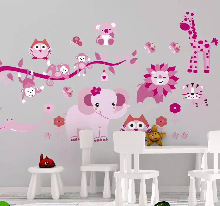 Oppdag vårt Klistremerke for barn søte skapninger samlet, designet med en leken og fargerik grafikk som tar deg med inn i en magisk jungel. Dette klistremerket fremhever snodige og søte dyr i en tegnefilmstil som vil glede både barn og voksne. Med sitt rosa og livlige design, gjør dette klistremerket ethvert rom til et lekent eventyrland!