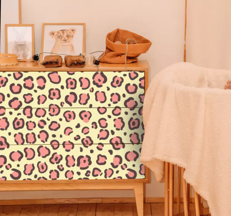 Oppdag vårt unike klistremerke møbler leopardpels tekstur, designet med et grafisk uttrykk som kombinerer elegant møbelstil med den ville skjønnheten av leopardmønster. Med sine karakteristiske flekker og inspirerende mønstre bringer dette produktet et lekent preg til enhver innredning. Den rosa nyansen gir en livlig kontrast, og skaper et iøynefallende dyreavtrykk som vil forvandle rommet ditt til et kunstverk!