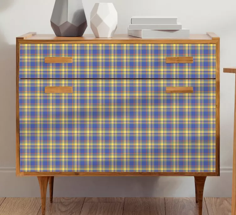 Oppdag vårt unike klistremerke møbler moderne rutemønster, designet med et fengende grafisk preg! Dette mønsteret kombinerer tartan med en myk stoff tekstur som gir en fargerik og geometrisk tilnærming til møbeldekorasjon. Perfekt for å gi liv til pledd og andre møbler, dette klistremerket er designet for å imponere med sine iøynefallende farger og detaljer.