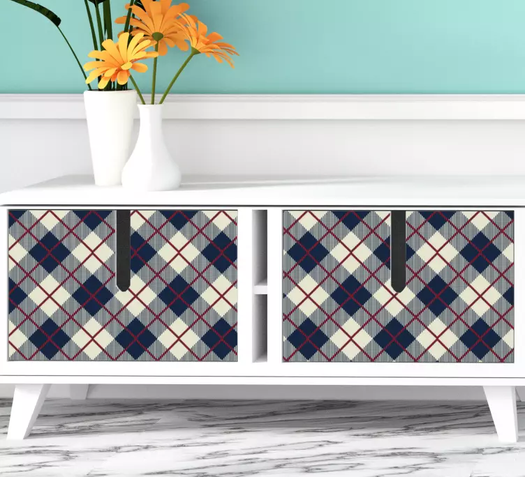 Oppdag vårt unike klistremerke møbler rutete trykk lag, hvor klassisk design møter moderne stil! Dette flotte klistremerket har et rutete mønster inspirert av tradisjonelt skotsk design, og gir et friskt og stilfullt preg til ethvert rom. Den geometriske teksturen tilfører dybde og karakter, noe som gjør dette til den perfekte detaljen for å oppgradere møbler og pledd.