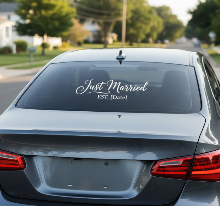 Perfekt for nygifte, dette dekorative stykket har elegant typografi som feirer gleden ved ekteskapet. Sitater 'Just Married' symboliserer en ny reise og forpliktelse, og vekker en følelse av kjærlighet og tilknytning. Ideelt for å personliggjøre kjøretøy og gi en sjarmerende uttalelse på bryllupsdager.