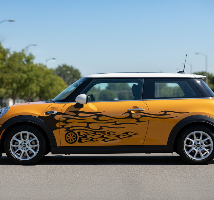 Referanse:: A54669Oppdag vårt fantastiske klistremerke til bil tynne svarte dekkflammer, designet med en imponerende grafikk som gir bilen din et unikt og sporty utseende. Dette klistremerket har en satengfinish som reduserer refleksjoner og gir en strålende fargeintensitet, perfekt for å fremheve bilens stil. Med en gramvekt på 80 mikron og innebygget lim, er dette produktet både holdbart og enkelt å bruke!