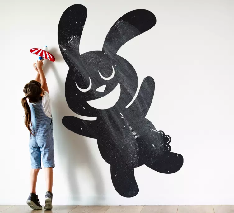 Vår klistremerker krittavler glad kanin figur har en fantastisk grafisk utforming som virkelig fanger oppmerksomheten! Med den lykkelige kanin-silhuetten som smiler og sprer glede, gir den et snodig og lekent preg til ethvert rom. Dette tegneserieinspirerte klistremerket er perfekt for barn og tilfører liv til veggene dine!