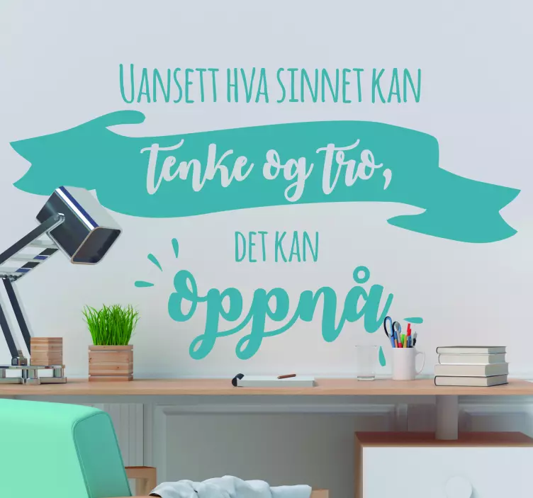 Med dette kraftige klistremerket kan du gi veggen din et annerledes og personlig uttrykk. Det er enkelt å sette opp, og du kan velge mellom en rekke farger og størrelser. Dette sitatmerket vil garantert gjøre veggen din til et blikkfang.