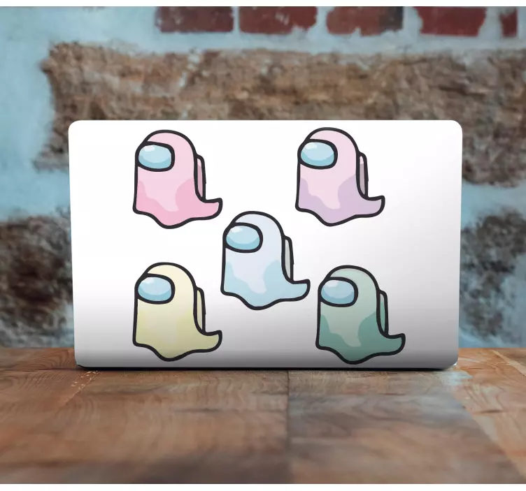 Utforsk vår fantastiske laptop klistremerke fargerike figurer, som bringer liv og lekenhet til din digitale verden! Dette grafiske designet inkluderer søte spøkelser og figurer fra det populære video spillet blant oss. Med sine snodige og levende tegneserieelementer, vil dette klistremerket definitivt bli et blikkfang på din laptop!