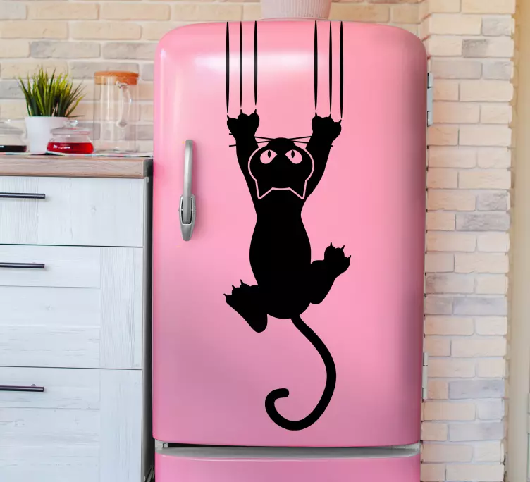 Lekende katt klatring kjøleskap klistremerke