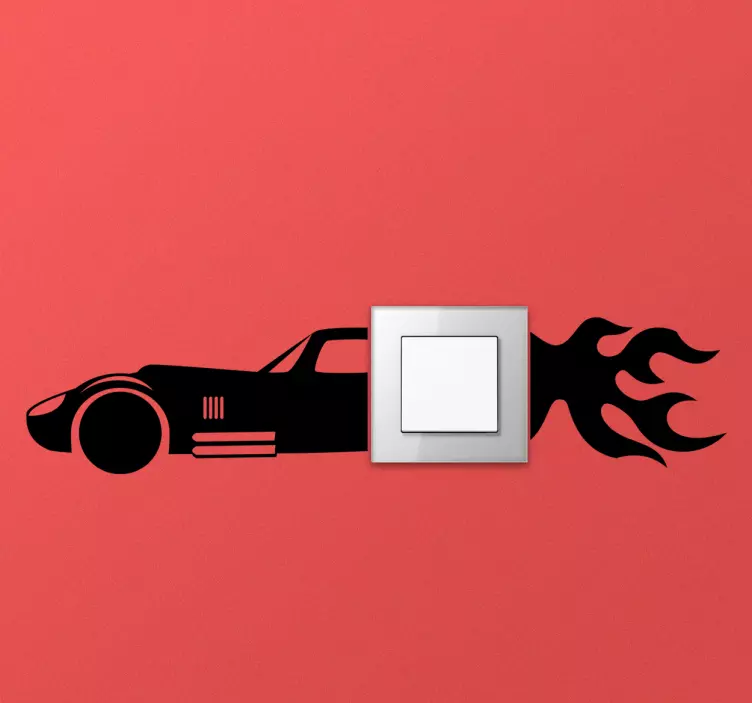 Oppdag vårt fantastiske lysbryter klistremerke racingbil flammer som bringer fart og stil til hjemmet ditt! Med et design som inkluderer en bilsilhuett i full fart, flankert av flammer i sterke farger, er dette klistremerket perfekt for racingentusiasten. Den svarte bakgrunnen gir en dramatisk effekt som virkelig fremhever hastigheten og energien i designet!