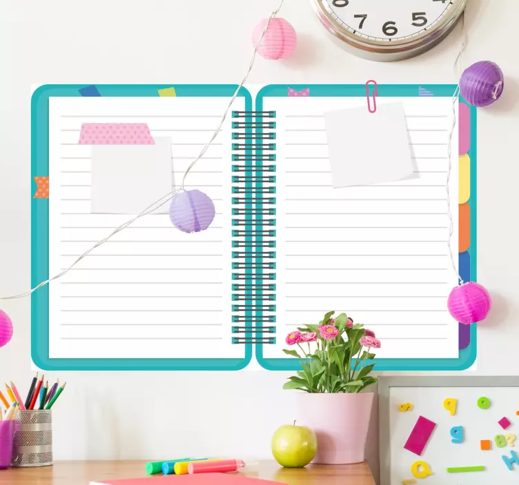 Dette fantastiske veggklistremerket med en vileda tavleoverflate er perfekt for å dekorere hjemmet eller virksomheten din. Hold deg organisert og på toppen av ting med dette flotte klistremerket! Det er enkelt å bruke på veggen din og du kan trekke det fritt med den medfølgende pennen. Du kan notere viktige påminnelser og avtaler, noe som er mye mer effektivt enn å bruke penn og papir! Designet er dekorativt med en bærbar pc og forskjellige fargede faner. Det er ideelt for soverom eller kontorlokaler.