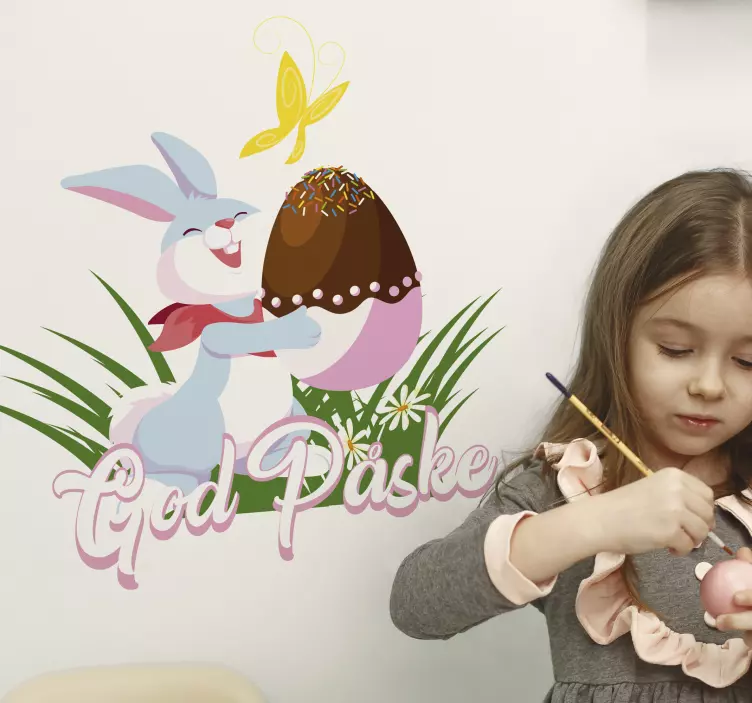 Det er enkelt å påføre på alle flate overflater og det skreller ikke eller rynker. Påskeharen med veggdekor på egg vil gi den perfekte touchen til ditt påskearrangement.