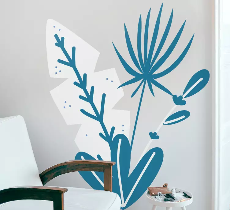Oppdag vårt fantastiske planteklistremerke med stilisert bladmønster, som kombinerer en vakker grafisk design med inspirerende elementer fra naturen. Dette dekorative klistremerket, med sitt tropiske bladmønster, vil bringe liv til ethvert rom. Illustrasjonen av blader og planter gir en følelse av friskhet og harmoni, perfekt for den som ønsker å skape en naturlig atmosfære i hjemmet.