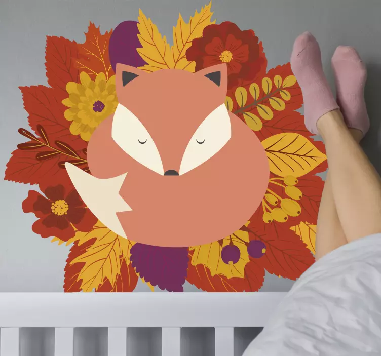 Oppdag vårt unike Rev med blader dyr klistremerke, hvor grafisk design fanger høstens skjønnhet med høstløv og dyreliv i naturen. Dette fargerike klistremerket viser en søvnig rev blant blomster og blader, og gir en livlig atmosfære til ethvert rom!
