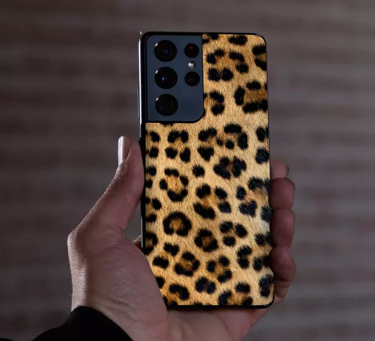 Referanse:: A48655Et stilig omslag med et slående leopardmønster, preget av sine livlige gyldne og svarte flekker. Dette iøynefallende designet tilfører et vilt og stilfullt element, perfekt for de som ønsker å vise frem sin dristige personlighet samtidig som de beskytter enheten sin.