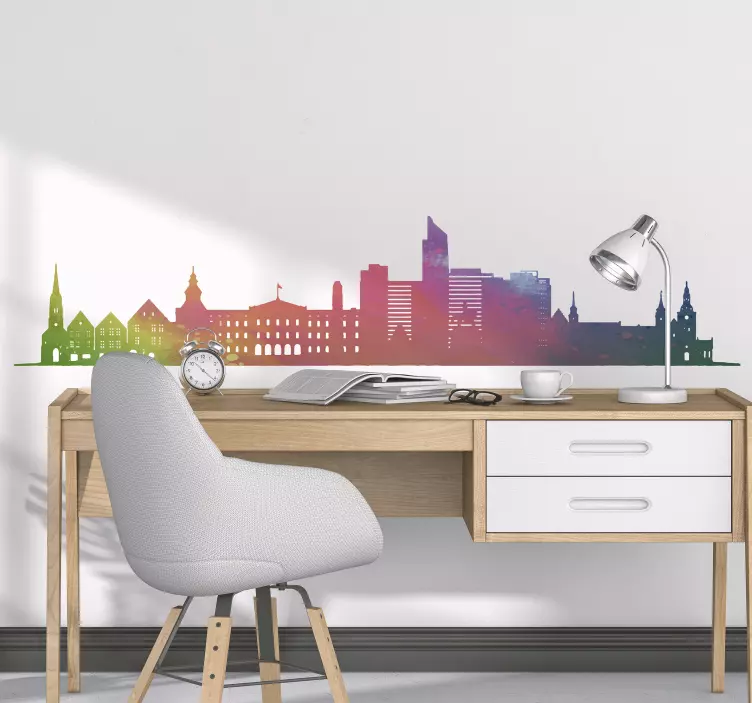 Referanse:: A18382Forbedre utseendet på hjemmet ditt med dette flotte veggoverføringsbildet av silhuettens skyline av Oslo på en flerfarget bakgrunn. Dette designet er en fantastisk byshorisont i Oslo, som vil gi en fin touch til veggoverflaten på både stuen og soverommet ditt. Det er enkelt å påføre på grunn av den matte kvaliteten av beste kvalitet. Det vil ikke danne luftbobler eller rynker på overflaten, og du vil elske det.