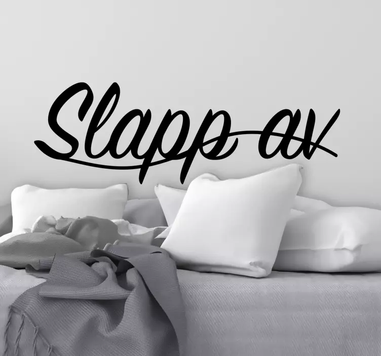 Dette stilige klistremerket har teksten 'Slapp av' og vil gi ethvert rom et nydelig preg. Det kan brukes på soverommet, badet eller stuen i en hvilken som helst farge og størrelse du ønsker. Besøk også nettstedet for andre dekorative vinylmerker som vil passe perfekt til rommet ditt.