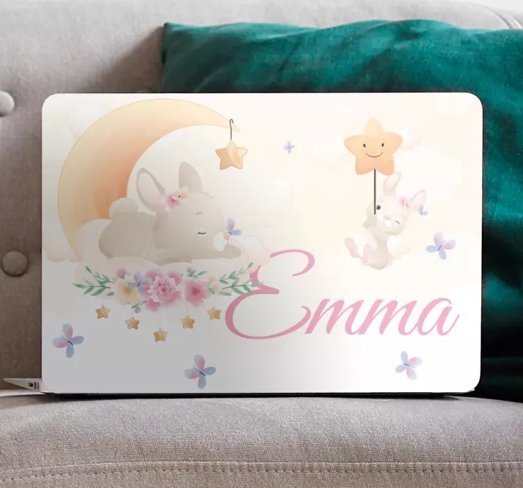 Referanse:: A35386Søt kanin klistremerke til laptop med navn