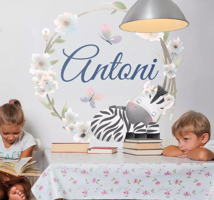 Søte dyr sebra med navn, veggklistremerke barnerom
