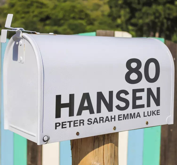 Dette klistremerket er laget av det beste vinylmaterialet og vil ikke boble eller rynke seg på overflaten. Du kan enkelt kjøpe det online for å spare tid og betale med et av våre pålitelige betalingsalternativer. Legg det i handlekurven nå for å gi postkassen din et personlig preg!