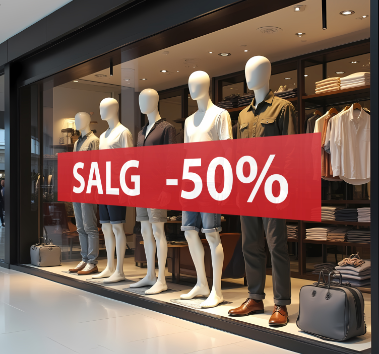 Et tilpasset rabatt salgsklistremerke gir et profesjonelt preg til enhver butikk eller event. De er ideelle for å tiltrekke seg kunder og fremheve spesielle kampanjer. Med sin iøynefallende design kan disse klistremerkene virkelig forvandle et vanlig butikkvindu til en spennende salgsopplevelse, og inspirere kundene til å handle!