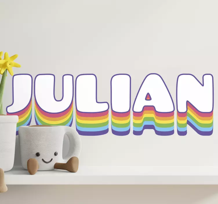 Vibrant navneskaping tekst klistremerke er den perfekte måten å uttrykke seg på, og kan forvandle ethvert rom til et kunstverk. Dette klistremerket gir en livlig og lekkert atmosfære som inspirerer til glede og kreativitet. Bruk det på barnerommet for å legge til en personlig touch, eller på kontoret for å lyse opp arbeidsplassen. Med sin unike regnbuefarge kan det lett tilpasses og gi et friskt pust til ditt hjem eller arbeidsmiljø!