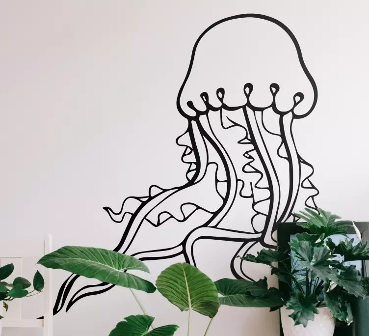 Oppdag den fantastiske verdenen av havet med vårt Villdyr klistremerke elegant manet kontur. Dette grafiske designet fanger essensen av sjølivet med en minimalistisk kunstnerisk tilnærming. Den vakre maneten er fremhevet i en stilig svart og hvit tegning som gir et moderne preg. Med sin enkle, men slående disposisjon vil dette produktet være et blikkfang i ethvert rom.