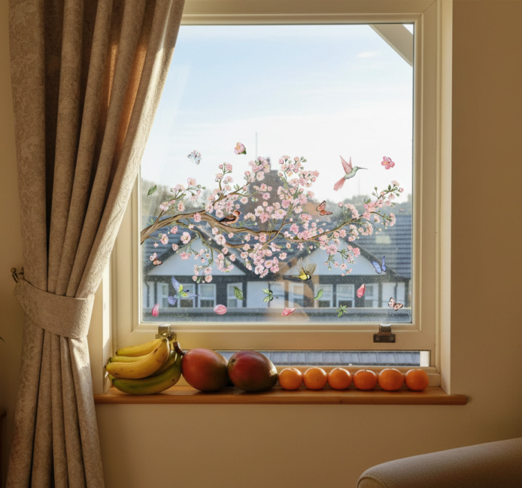 Vindusklistremerke med kirsebærblomster og fugler